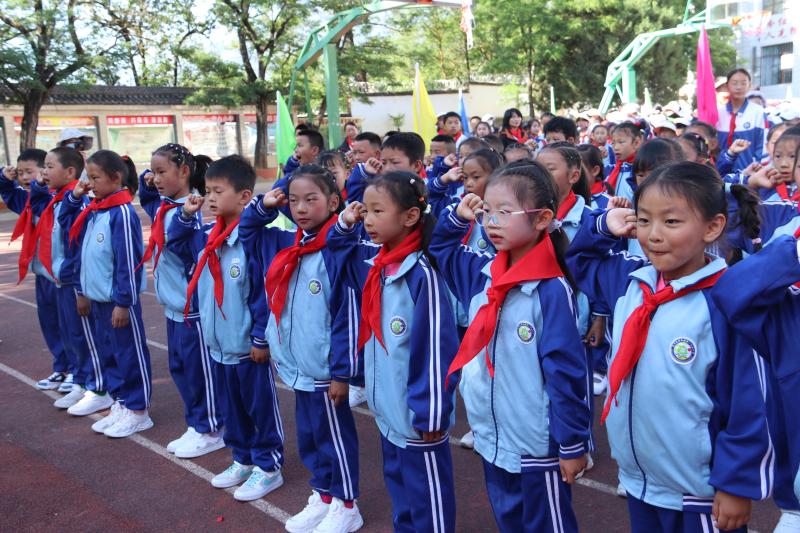 上午8點30分,活動正式開始,升國旗、唱國歌、行隊禮,孩子們激動的心情溢于言表。在新隊員入隊儀式上,共有138名學生加入光榮的中國少年先鋒隊組織,老隊員們?yōu)樗麄兣宕骷t領巾,鮮艷的紅領巾在新隊員的胸前飄揚,也在燦爛的朝陽下熠熠閃光。隨后,該校對獲得“2022—2023年度“優(yōu)秀少先隊員”“優(yōu)秀班干部”“紅領巾一星獎章榮譽”的同學進行了表彰。最后,學校舞蹈社團的孩子們?yōu)榇蠹規(guī)砭实母栉璞硌?,把整個活動推向高潮。 (張燕 攝影報道)
