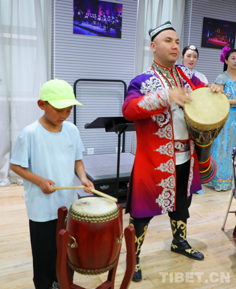 各位藝術(shù)家老師們能歌善舞,為他們帶來不同民族的藝術(shù)表演。時間不長的參觀過程卻讓孩子們體會到祖國大地上不同民族藝術(shù)的魅力。