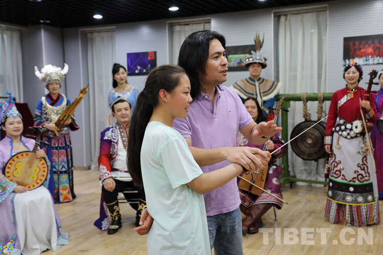圖為玉樹姑娘體驗做樂隊指揮的快樂 攝影:王茜