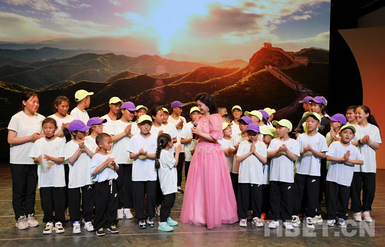 圖為孩子們在舞臺上和中央民族歌舞團國家一級歌唱家劉媛媛共同表演 攝影:王茜