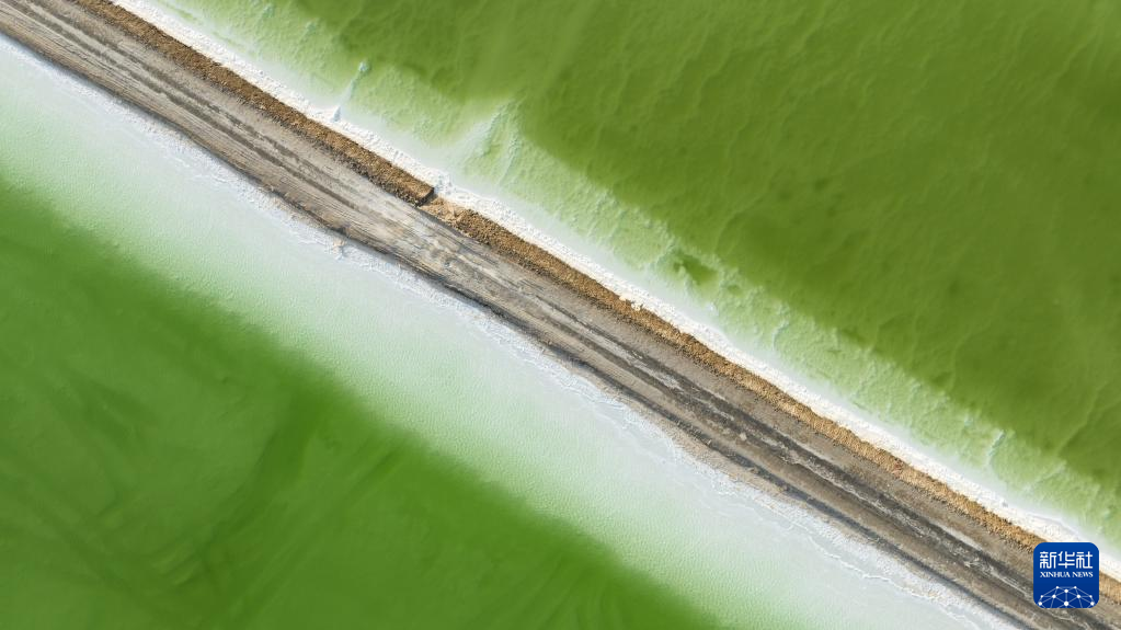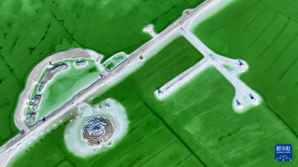 這是6月8日拍攝的察爾汗鹽湖景色(無人機全景照片)。 新華社記者 張宏祥 攝
