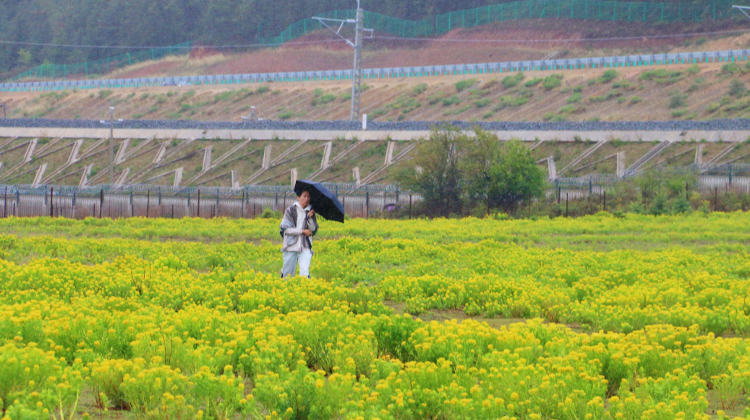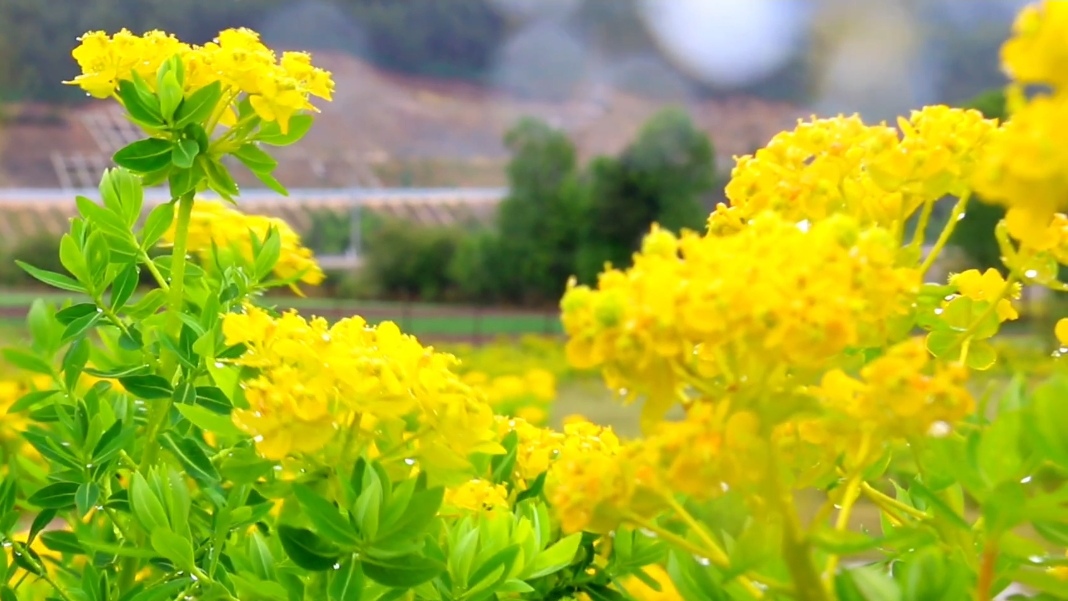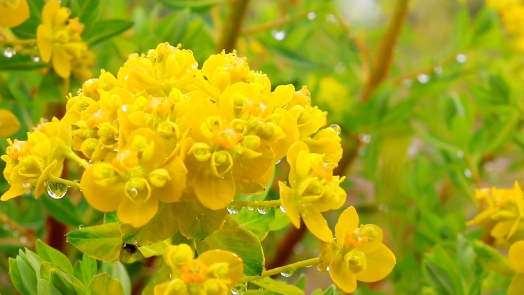 黃色的狼毒花在雨中越發(fā)精神