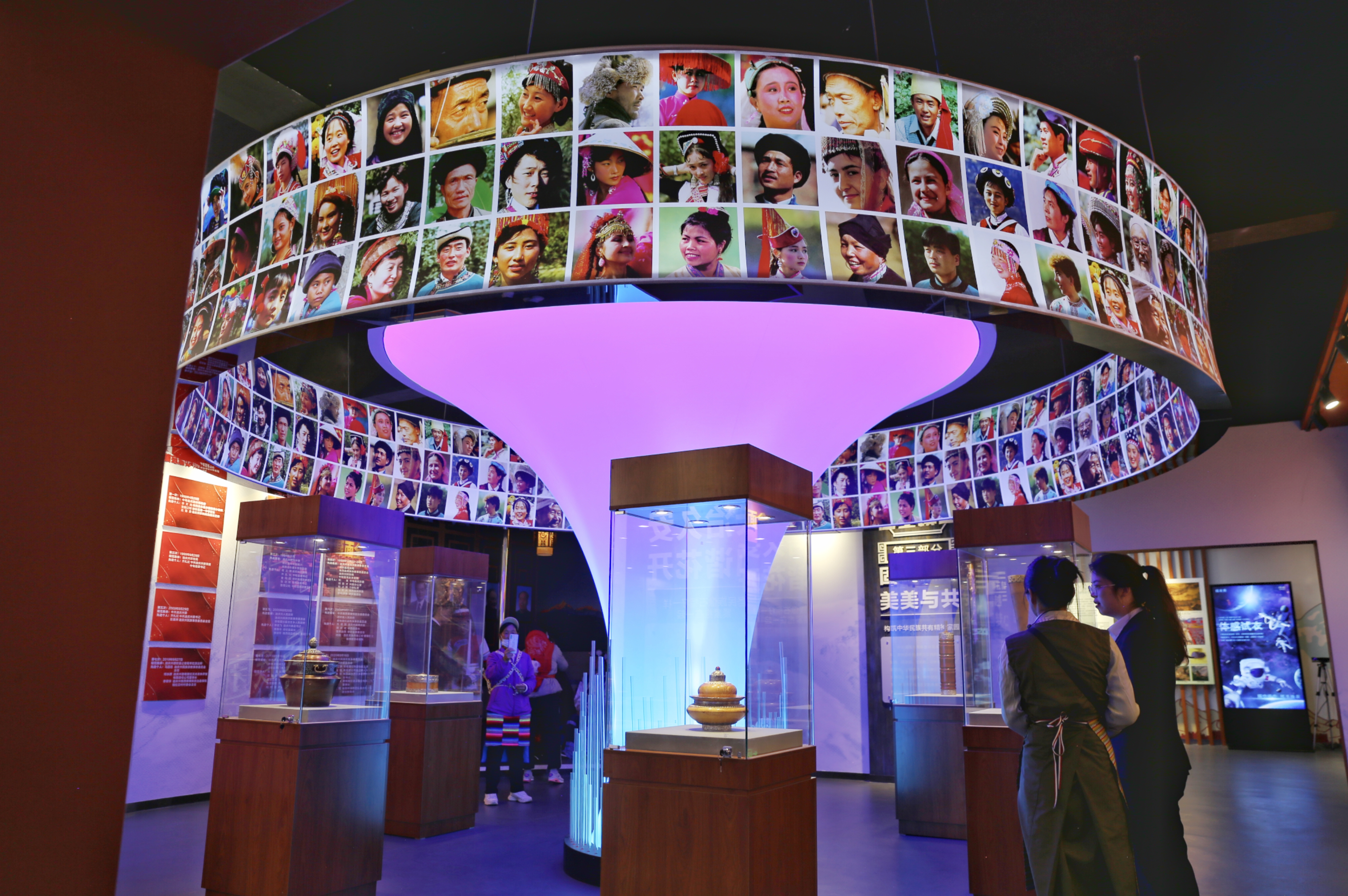 展館內(nèi)設(shè)有電子書設(shè)備、“中華民族全家福”雕塑、“互動(dòng)換裝”設(shè)備、自行車VR騎行體驗(yàn)設(shè)備、多民族家庭場(chǎng)景、折疊LED屏、民族團(tuán)結(jié)進(jìn)步知識(shí)搶答電子設(shè)備及“云南民族團(tuán)結(jié)誓詞碑”模型等,通過互動(dòng)式、體驗(yàn)式教育,增強(qiáng)展館吸引力和功能性。