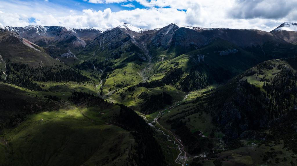 這是6月18日在青海省玉樹(shù)藏族自治州囊謙縣境內(nèi)拍攝的三江源地區(qū)風(fēng)光。 新華社記者 柳澤興 攝