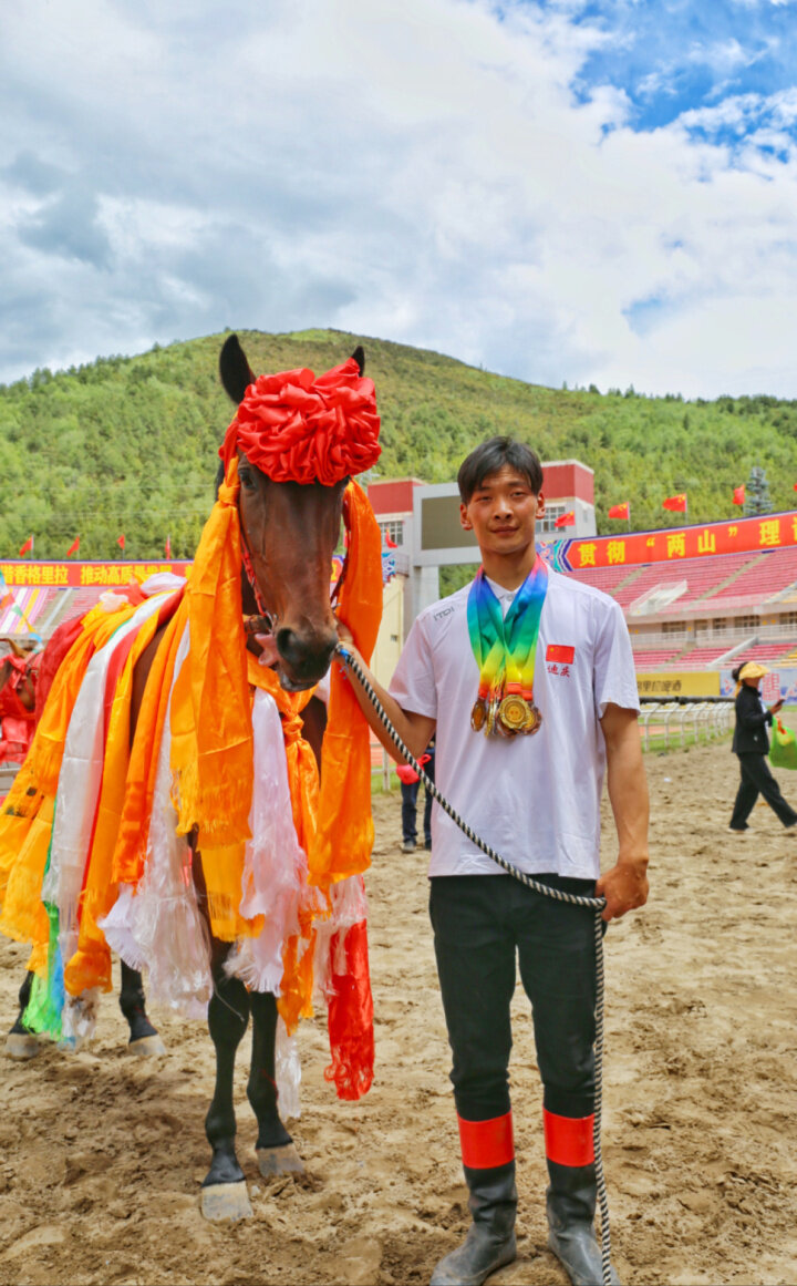三天來,香格里拉五鳳山賽馬場內(nèi)人頭攢動,熱鬧非凡,州內(nèi)各族群眾和游客從四面八方聚集而來,為三年未能出現(xiàn)在香格里拉端午賽馬現(xiàn)場的駿馬和騎手們搖旗吶喊、加油助威,而來自州內(nèi)及友鄰州市的各代表隊則不負(fù)眾望,為大家呈現(xiàn)了一場場熱血沸騰的高水平馬術(shù)競技?!拔覐?5歲開始參加比賽,今年是收獲最大的一次,連獲了4枚金牌,我很高興,期待明年的端午節(jié)能再次與來自不同地方的選手切磋?!?3歲的知詩定主說道。此次,他獲得了甲組1000米走馬、甲組3000米走馬、乙組3000米走馬、丙組1000米走馬賽冠軍。與他并駕齊驅(qū)的嘎提七林則在甲組5000米速度賽、丙組5000米速度賽、甲組3000米速度賽、乙組3000米速度賽中獲得金牌。