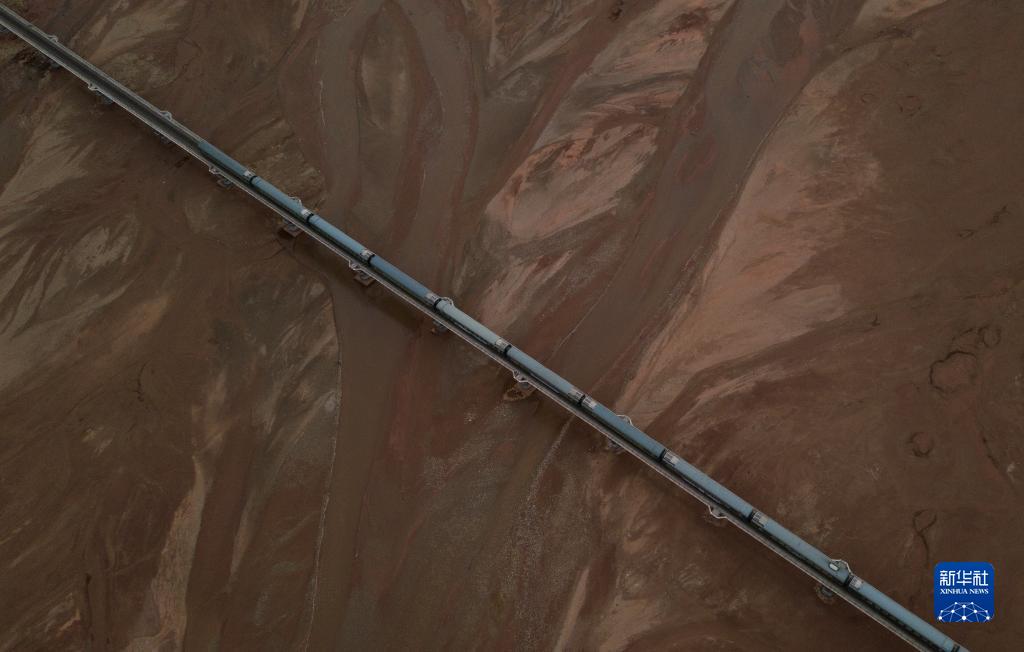 6月15日,一列火車駛過長江源地區(qū)的沱沱河。新華社記者 張鋮 攝