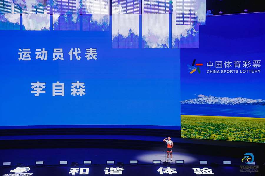 運(yùn)動(dòng)員代表李自森宣誓。環(huán)湖賽組委會(huì)供圖
