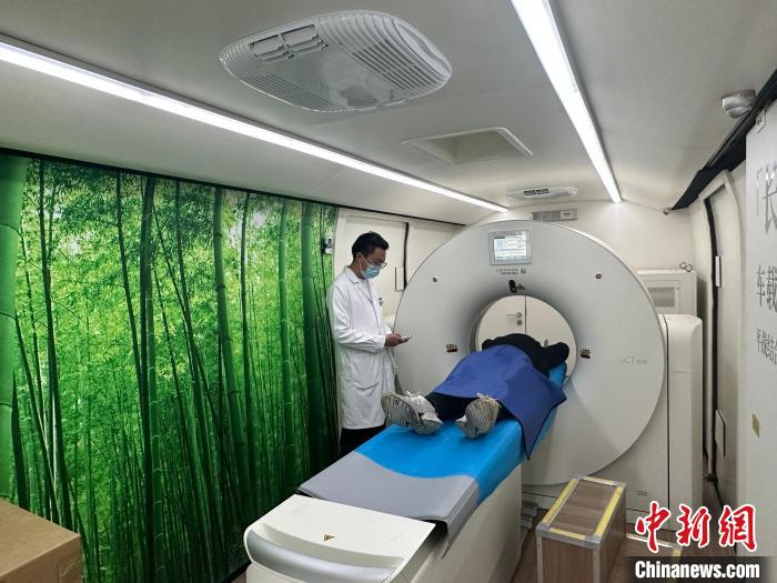 一名牧民在青海省果洛藏族自治州瑪沁縣人民醫(yī)院的“移動醫(yī)療一體車”完成CT檢查。同濟(jì)大學(xué)附屬上海市第四人民醫(yī)院供圖