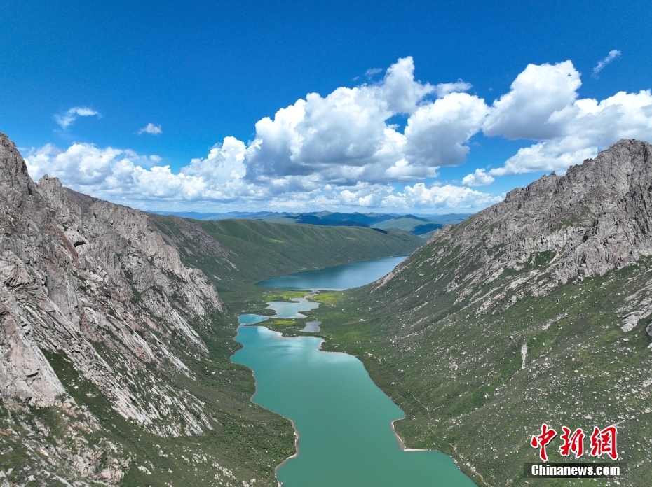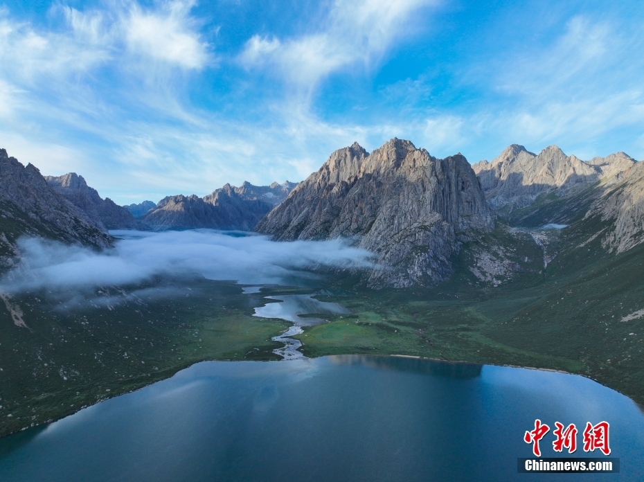 7月19日,盛夏時節(jié),青海省果洛藏族自治州久治縣年保玉則山間云霧繚繞,山下鮮花盛開,水清草豐,靜謐的湖水與嶙峋的山巒相映成趣,宛如仙境。年保玉則總面積3469平方公里,山形如蓮花,保存有冰蝕地貌、冰磧地貌、現(xiàn)代冰川等地質(zhì)遺跡。(無人機照片)中新社記者 馬銘言 攝