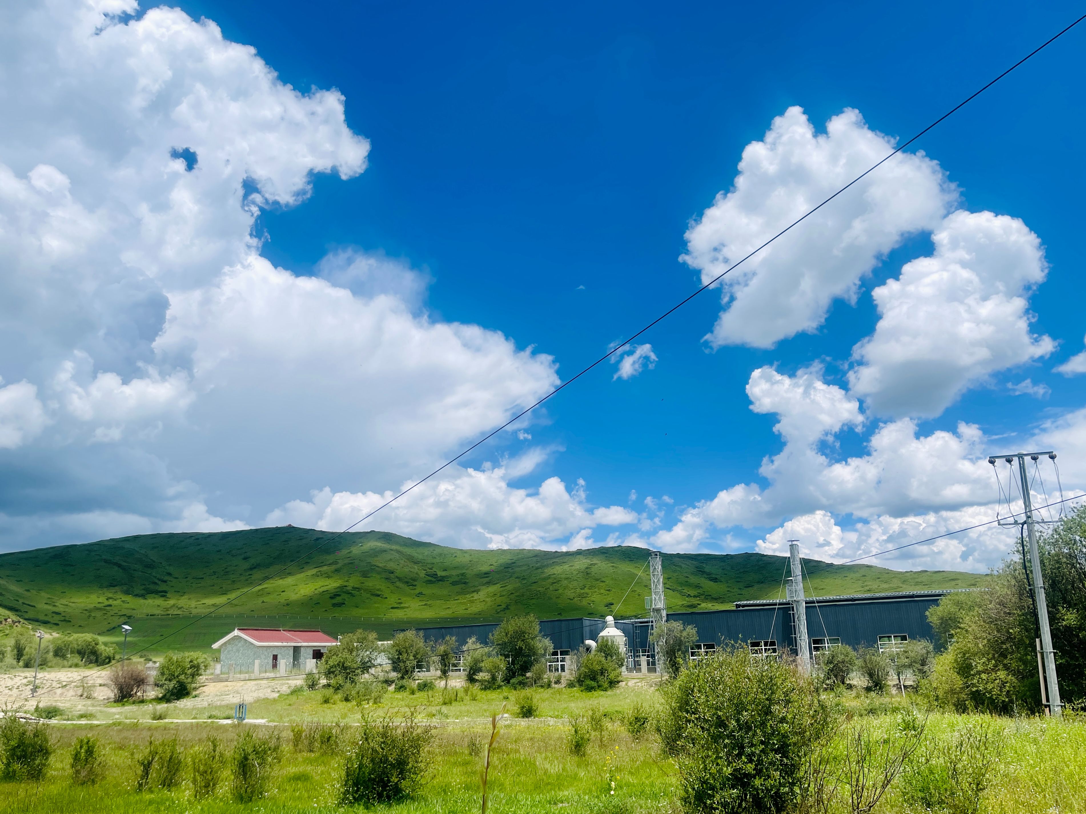 走在紅原縣牦?,F(xiàn)代農(nóng)業(yè)園區(qū)里,就像身處童話故事, 藍(lán)天白云之下,草原一望無際,風(fēng)景美得讓人沉醉。