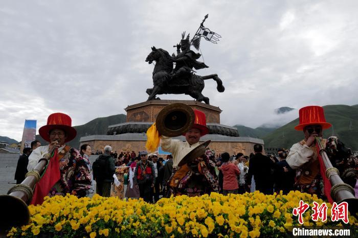 圖為玉樹(shù)市格薩爾廣場(chǎng)的藏族傳統(tǒng)器樂(lè)表演。陸江濤 攝