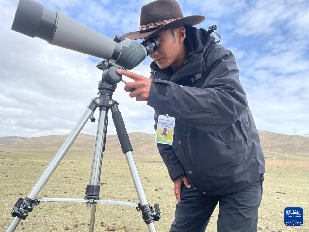 濕地生態(tài)管護(hù)員在青海隆寶國家級自然保護(hù)區(qū)觀察野生動(dòng)物。新華社記者 李琳海 攝