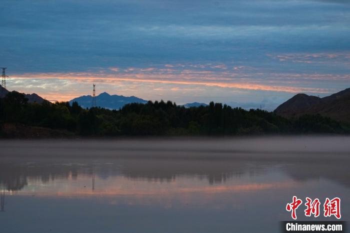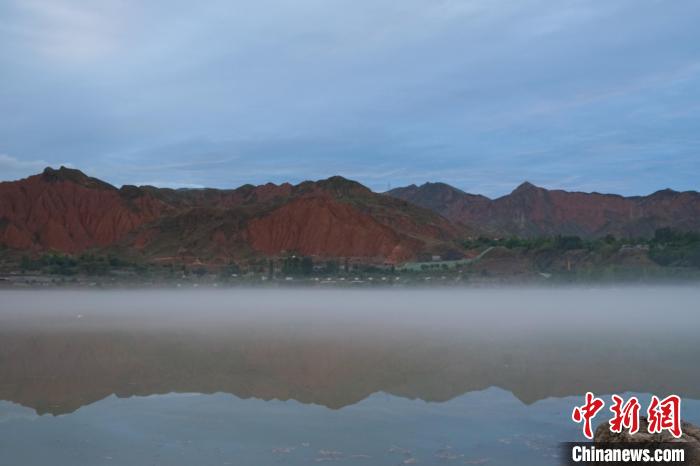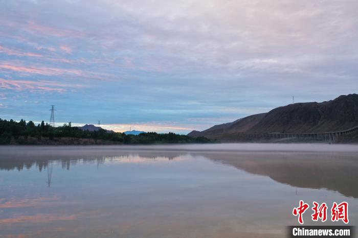 圖為降雨過后,黃河青海尖扎段的河面上升起薄霧。馬銘言 攝