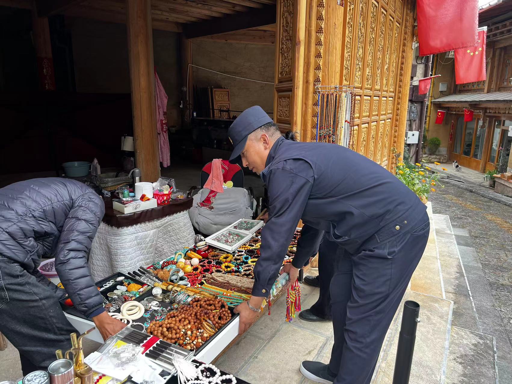 整治過程中,綜合行政執(zhí)法人員全天候無縫巡查,重點(diǎn)對出店經(jīng)營、占道經(jīng)營、亂停亂放、流動(dòng)攤販無序擺攤等問題進(jìn)行整治。排查月光廣場等公共區(qū)域擺攤?cè)藛T,凡屬古城內(nèi)商戶的一律要求返回店內(nèi)買賣;屬于流動(dòng)攤販的及時(shí)引導(dǎo)至劃定的攤位;對古城內(nèi)所有亂停亂放的機(jī)動(dòng)車和非機(jī)動(dòng)車,及時(shí)找到使用人,要求停放至指定區(qū)域,確保游客出行更加方便,市容更加整潔有序。圖為綜合行政執(zhí)法人員在勸導(dǎo)占道經(jīng)營攤點(diǎn)。