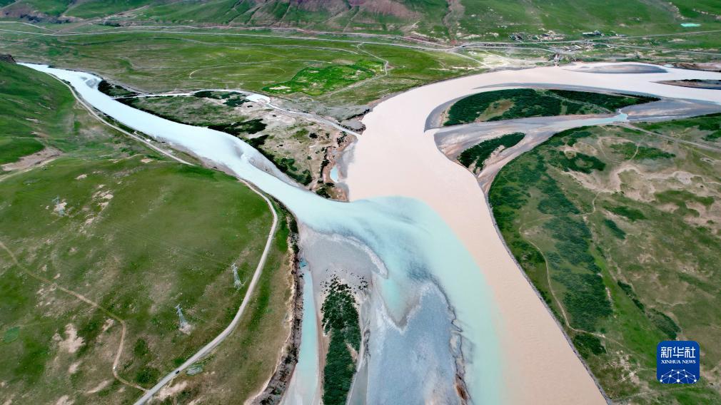 當(dāng)曲支流布曲與尕爾曲會(huì)合處(7月27日攝,無人機(jī)照片)。新華社記者 劉詩平 攝