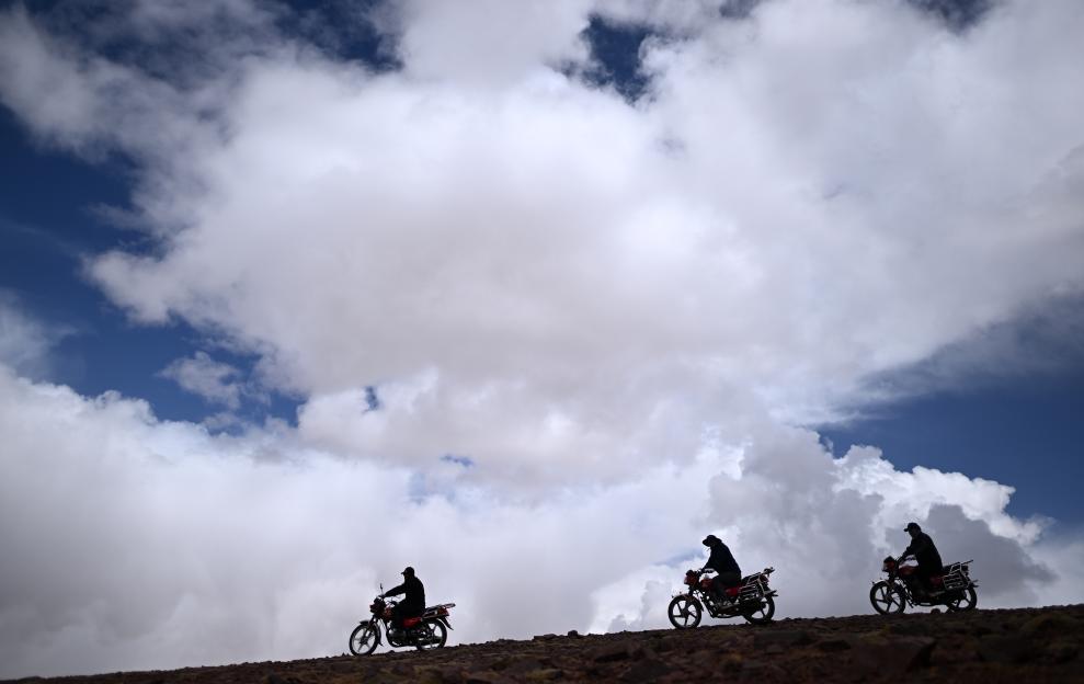 可可西里管理處卓乃湖保護站隊員在卓乃湖附近騎行巡護(6月17日攝)。新華社記者 張宏祥 攝