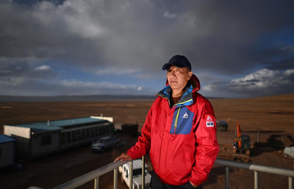 可可西里管理處卓乃湖保護站副站長郭雪虎在卓乃湖保護站(6月17日攝)。新華社記者 張宏祥 攝