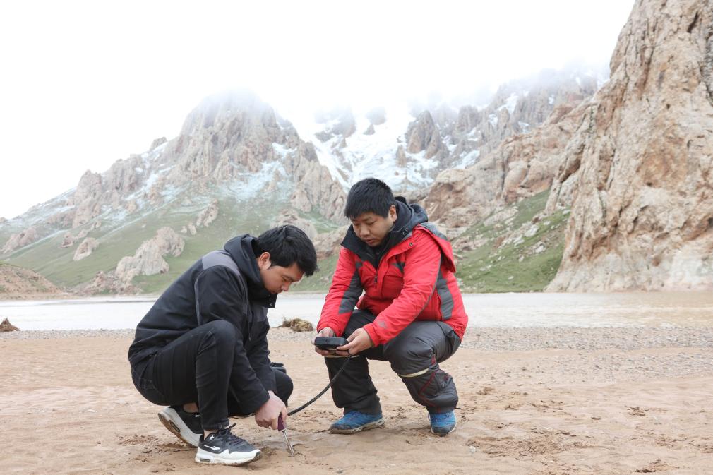 來(lái)自長(zhǎng)江科學(xué)院河流研究所的科考隊(duì)員徐志成和楊緒海,每到一個(gè)采樣點(diǎn)就采集河道床沙和懸沙樣品,測(cè)量河寬、水深、比降、流速,對(duì)比此前科考觀測(cè)數(shù)據(jù),分析長(zhǎng)江源區(qū)河道水沙輸移特性和河床演變情況。