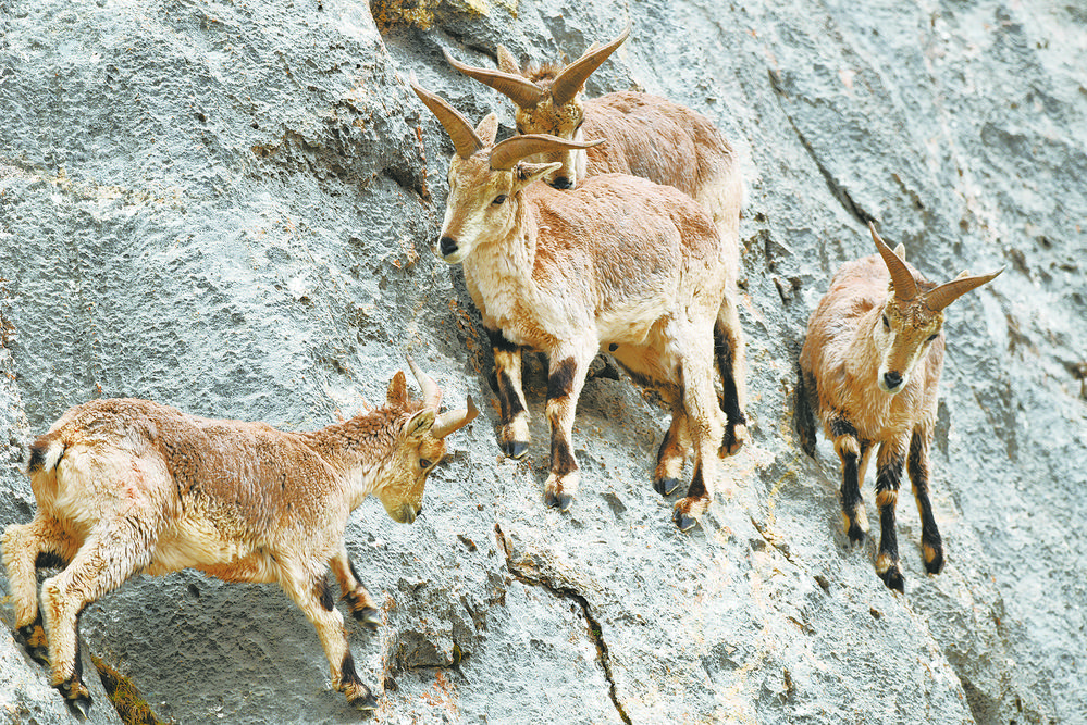 雪豹是山地黑夜的王者,崇山峻嶺間的山巖是它的專屬領地,它棲息在山巖朝陰的崖壁上。因此,次丁三人拍攝雪豹時會格外關注山巖朝陰的崖壁。
