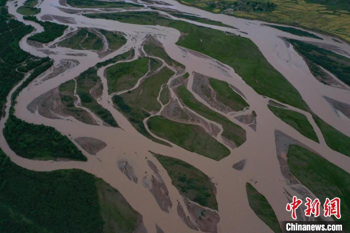 8月22日,航拍青海省玉樹藏族自治州囊謙縣境內(nèi)的扎曲河網(wǎng)狀水系。扎曲河是瀾滄江上游主要干流之一,縱橫交錯的河水在群山中蜿蜒流淌,形成獨特的高原景觀。
