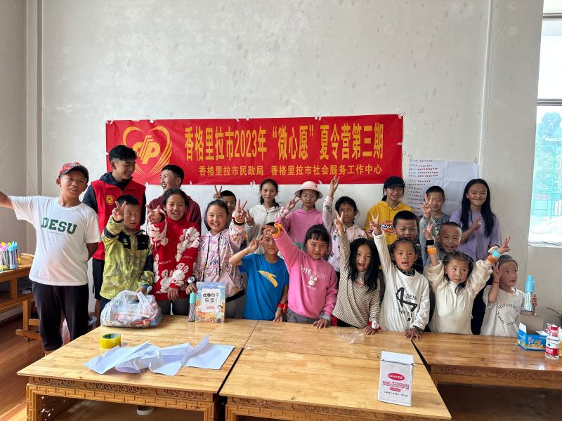 近日,由香格里拉市民政局、香格里拉市社會服務(wù)工作中心共同舉辦的尼西鄉(xiāng)2023年“微心愿”夏令營第三期暨護童成長活動在《明天更美好》的合唱中順利結(jié)營,其間開展兒童游園、才藝表演、表彰獲獎小朋友和優(yōu)秀志愿者。此次夏令營為期15天,來自尼西鄉(xiāng)幸福村、江東村、新陽村和湯滿村的153名小朋友和16名志愿者參加夏令營,開設(shè)作業(yè)輔導(dǎo)課程,舉行羽毛球、乒乓球、跳繩、丟沙包等運動項目,幫助孩子們提高學(xué)習(xí)成績、增強身體素質(zhì)、培養(yǎng)團隊意識,在運動中收獲健康和快樂。圖為小朋友們在活動中表達“微心愿”。