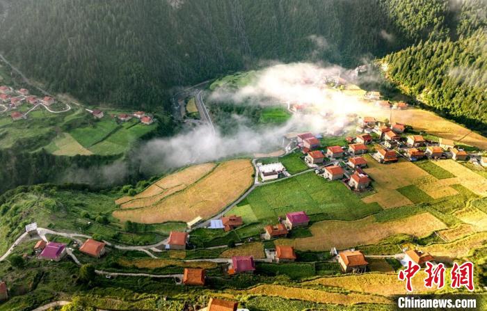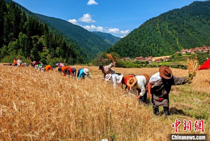 風(fēng)吹麥浪溢清香,田間地頭收割忙。眼下,四川阿壩州金川縣俄熱鄉(xiāng)成片的高原黑青稞迎來(lái)收獲季。村間沿路的田地里,黑青稞在微風(fēng)吹拂下如波濤翻滾,泛著金光。高處俯望,遠(yuǎn)處群山連綿,近處麥浪起伏,沃野千里,勾勒出一幅“產(chǎn)業(yè)興、百姓富、生態(tài)美”的鄉(xiāng)村振興美麗畫(huà)卷。