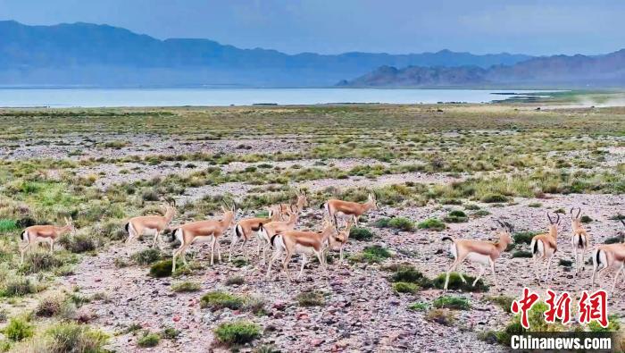 圖為成群鵝喉羚現(xiàn)身都蘭湖國家濕地公園。烏蘭縣融媒體中心供圖