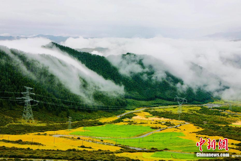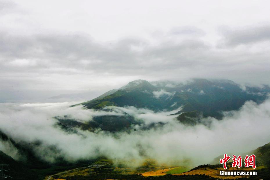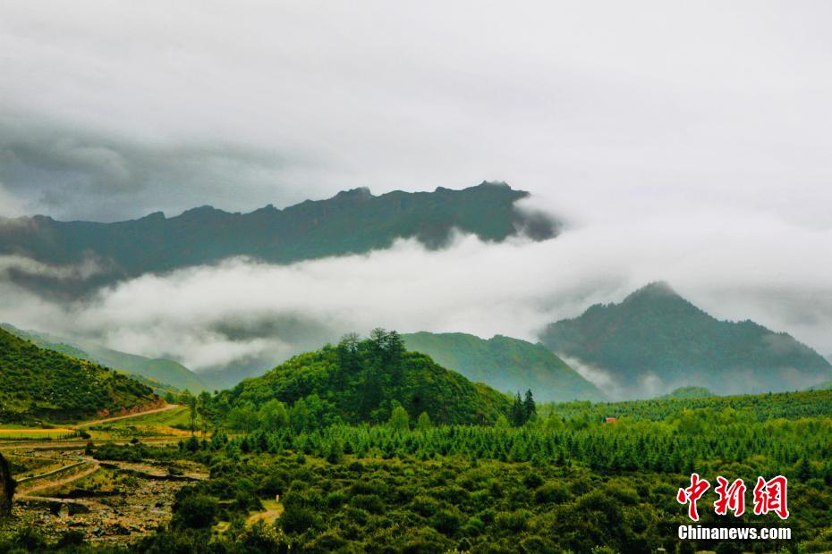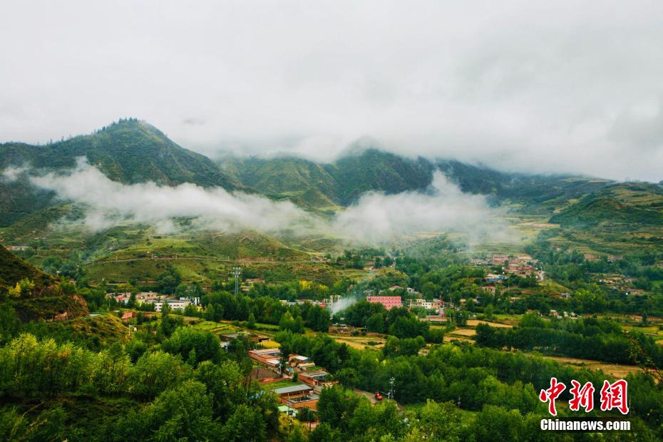 金秋9月,一場(chǎng)秋雨過后,青海省海南藏族自治州貴德縣山間云霧繚繞,白色云海像潔白的哈達(dá)飄落山間,與藍(lán)天、綠地相映成趣,風(fēng)光旖旎。