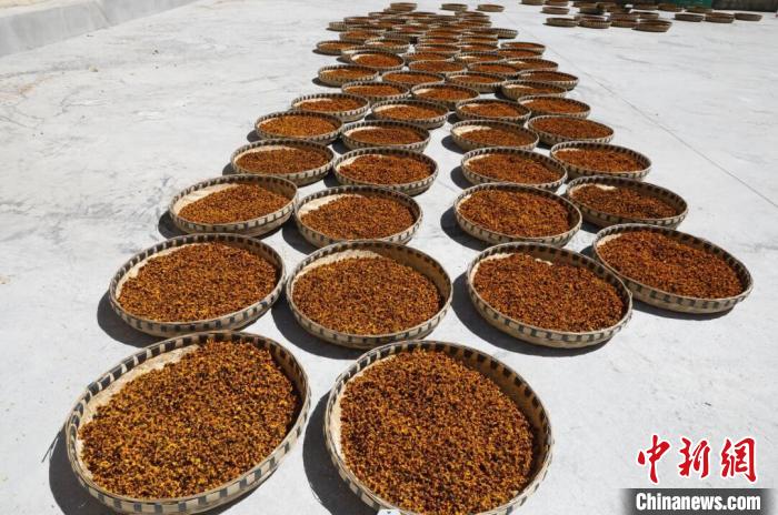村民正在挑選曬干后的高原雪菊。侯明宏 攝