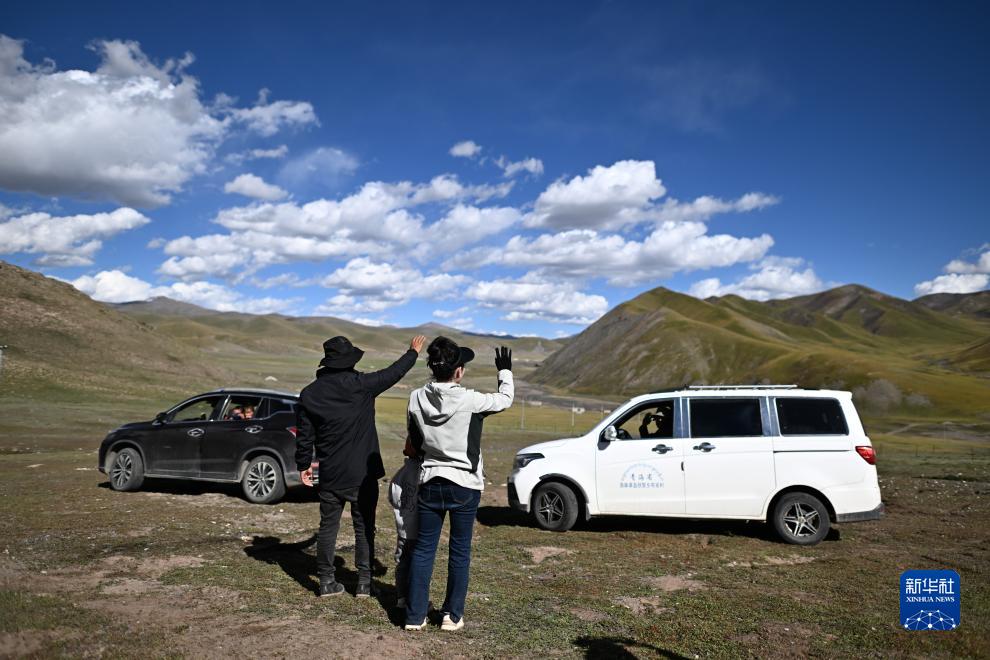 在青海省玉樹藏族自治州曲麻萊縣秋智鄉(xiāng)布甫村陽(yáng)光幼兒園,老師與學(xué)生家長(zhǎng)告別(9月14日攝)。新華社記者 張宏祥 攝