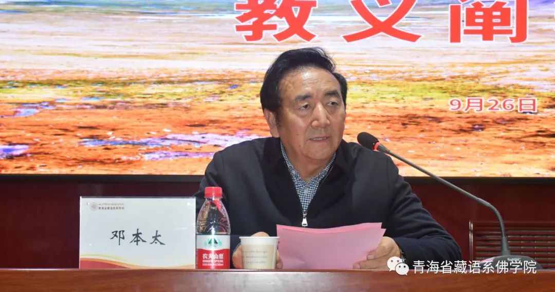 鄧本太在會(huì)上指出,我們要響應(yīng)習(xí)近平總書(shū)記的號(hào)召,堅(jiān)定文化自信,不斷豐富發(fā)展和傳承優(yōu)秀傳統(tǒng)文化,助力“美麗中國(guó)”生態(tài)文明建設(shè),深入挖掘和弘揚(yáng)藏傳佛教文化中“感恩自然,敬畏自然”的觀點(diǎn),讓佛教文化在新時(shí)代煥發(fā)勃勃生機(jī),更好地服務(wù)社會(huì)、利樂(lè)人群,積極踐行弘揚(yáng)佛教“依正不二”“身土不二”的人與自然和諧相處理念,以習(xí)近平生態(tài)文明思想為指導(dǎo)開(kāi)展生態(tài)保護(hù)實(shí)踐,服務(wù)高原經(jīng)濟(jì)社會(huì)發(fā)展。要著眼于青藏高原生態(tài)文明新高地建設(shè),全面實(shí)施青藏高原生態(tài)安全屏障保護(hù)治理,為構(gòu)建人與自然生命共同體努力發(fā)出“青海最強(qiáng)音”。要通過(guò)弘揚(yáng)優(yōu)秀傳統(tǒng)文化為推動(dòng)構(gòu)建人類命運(yùn)共同體做出貢獻(xiàn),發(fā)揮各自優(yōu)勢(shì)積極呼吁和參與生態(tài)保護(hù)和青藏高原生態(tài)文明建設(shè)。
