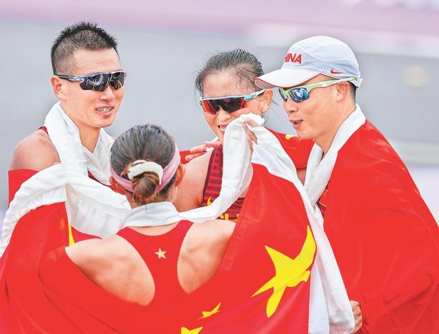 男女混合35公里競走是杭州亞運會新增的田徑小項,每隊可以選擇最多兩名男女競走選手共同走完35公里的賽程,取成績最好的一對成績相加確定總成績。該項目只有5支隊伍14名運動員報名,僅有中國隊和日本隊派出了各兩對選手?!罢f實話,賽前全隊都認為我們拿下金牌問題不大,但我還是有壓力,擔心拖后腿,團體賽不像個人賽,一個人的失誤就有可能影響全隊的成績?!鼻嘘柺步阏f。