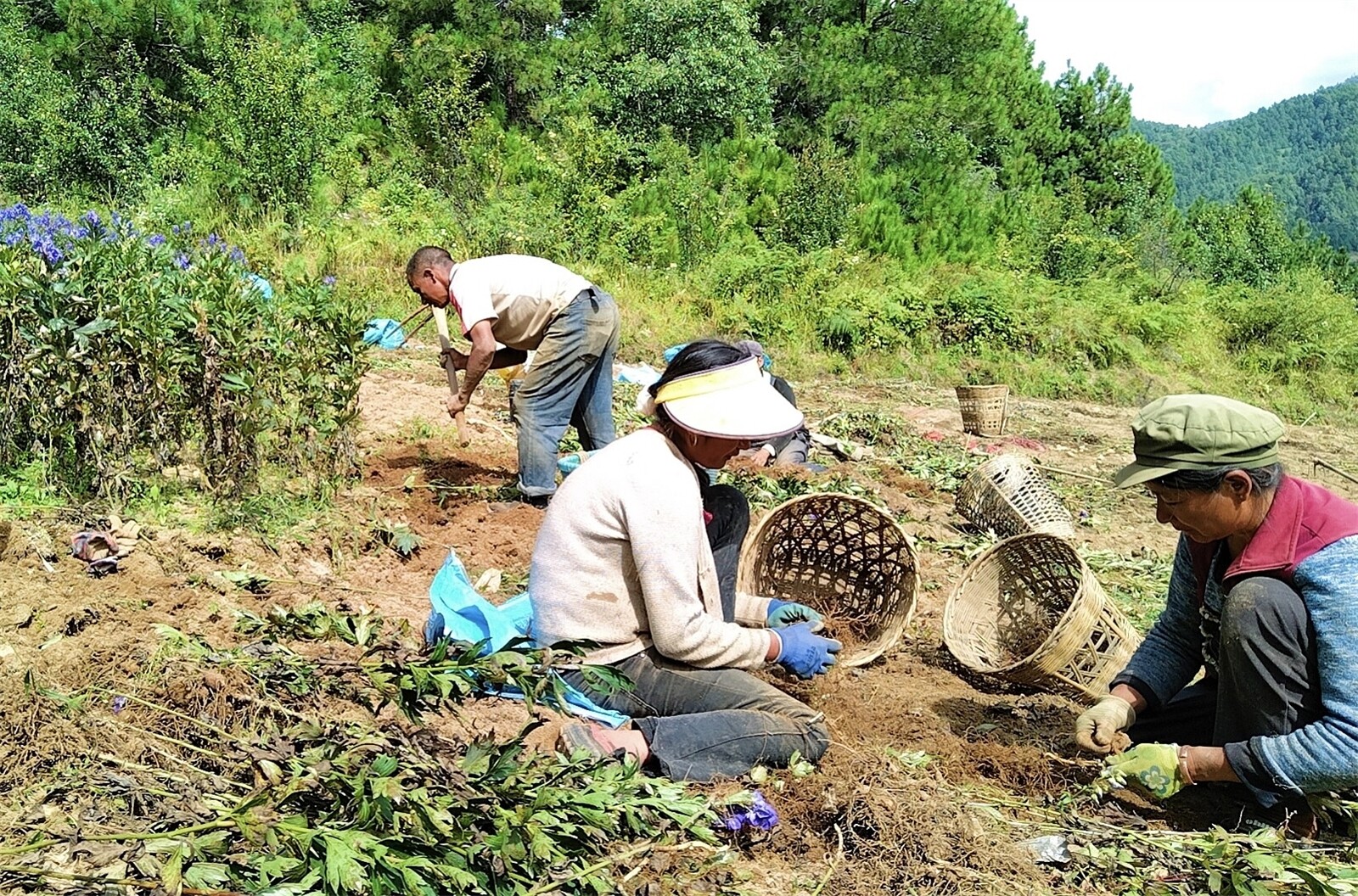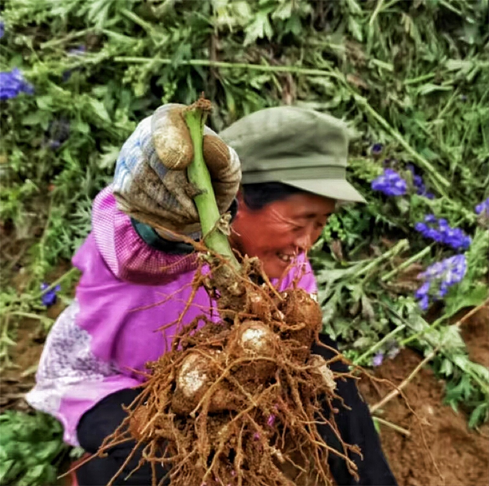 近日,維西傈僳族自治縣攀天閣鄉(xiāng)美洛村400余畝附子喜獲豐收。田間地頭,村民們?nèi)宄扇?,通力協(xié)作,將一顆顆采挖出來(lái)的附子收集成籮,集裝成袋,看著眼前的一袋袋附子,村民們都樂(lè)得合不攏嘴。“今年附子產(chǎn)量很高呢,按照去年的市場(chǎng)價(jià)今年一畝最多可有2萬(wàn)收入”美洛村副主任和麗新說(shuō)。