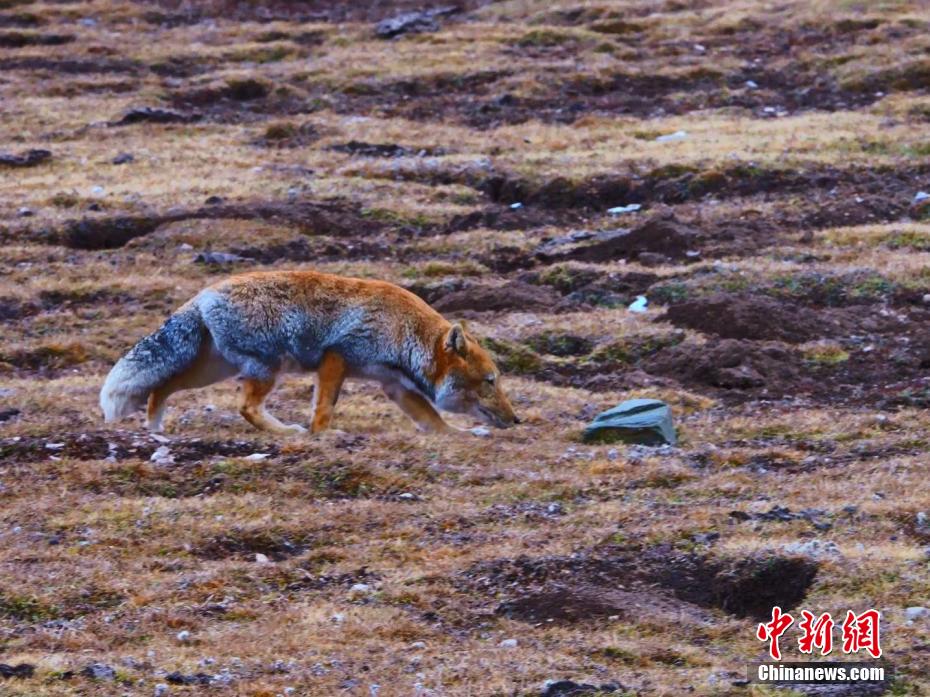 圖為“丑萌”藏狐駐足停留。張世偉 攝