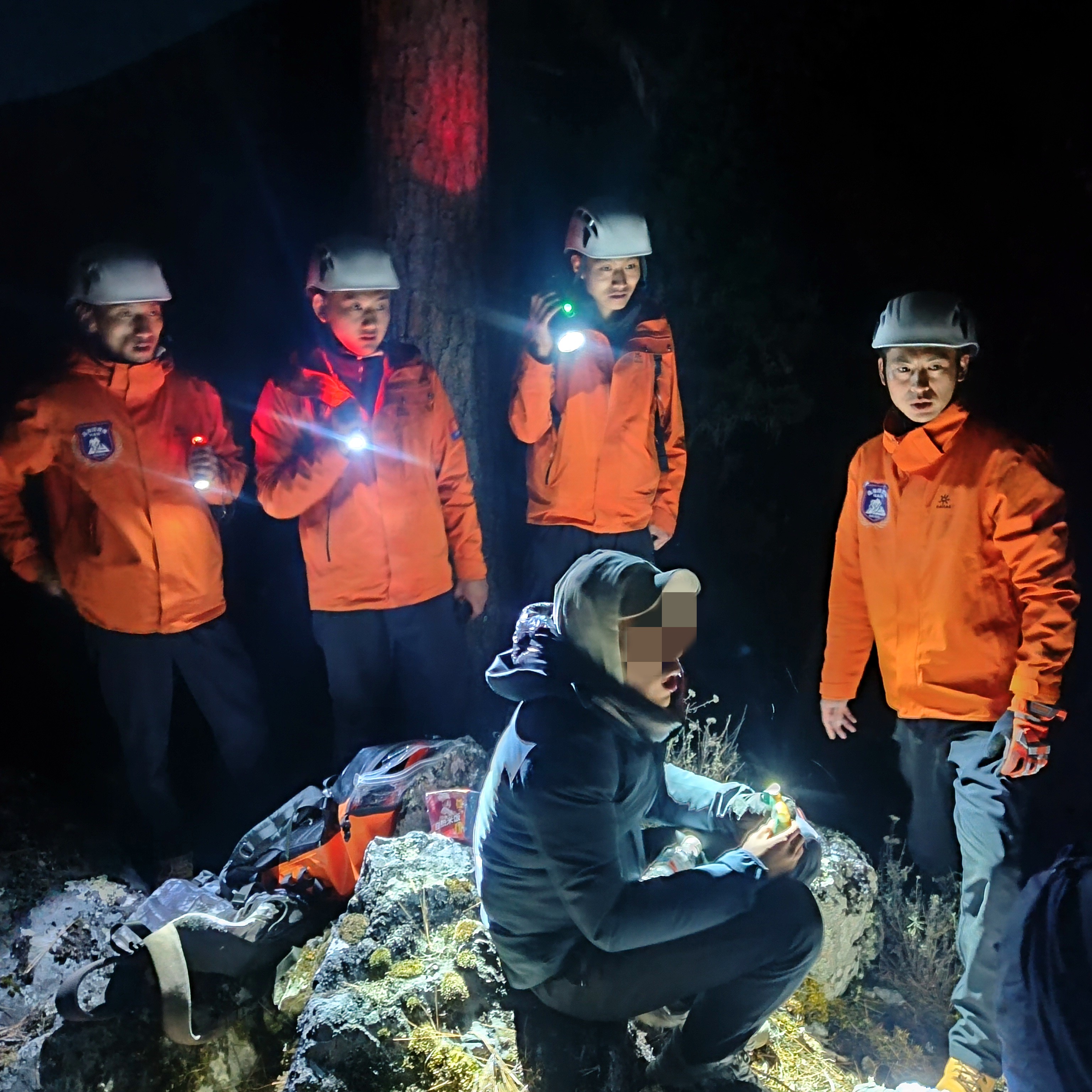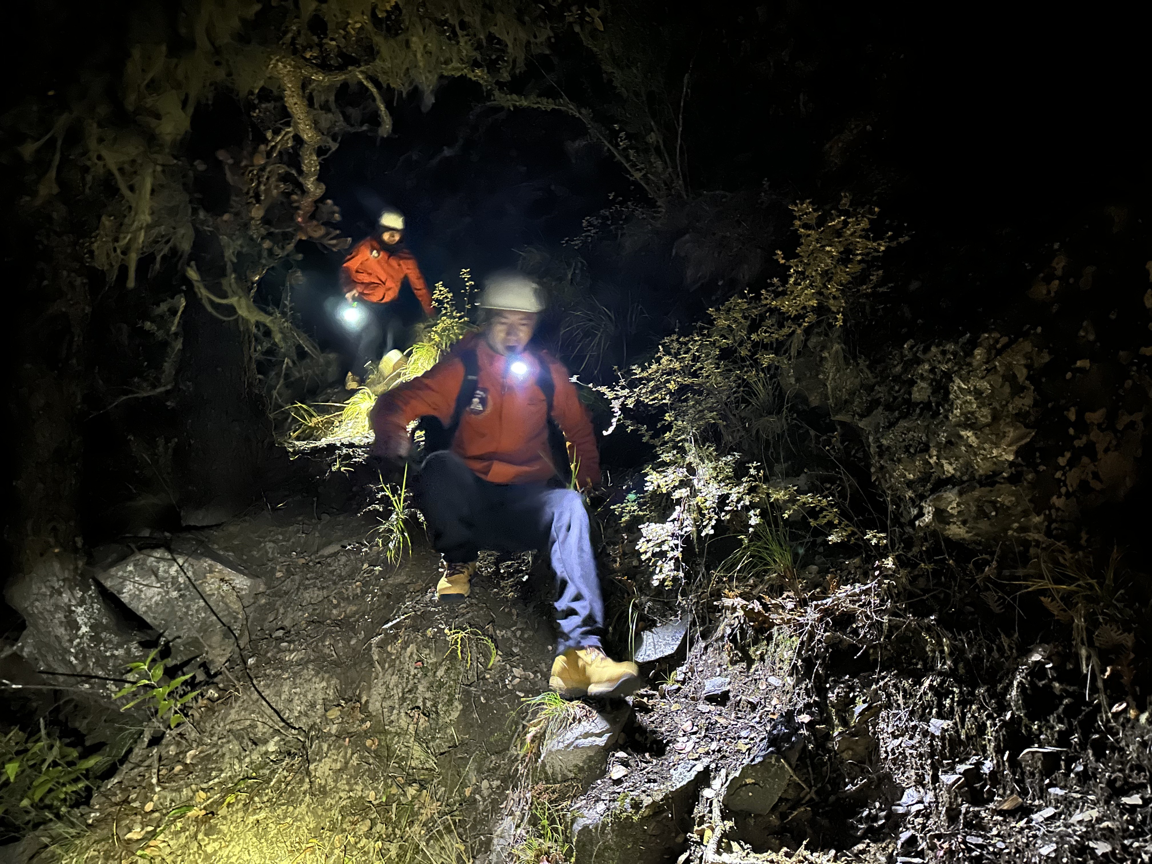 救援人員一邊與報警人保持聯(lián)系,一邊聯(lián)系當?shù)剜l(xiāng)鎮(zhèn)干部及村民,了解地形地勢和搜救線路。21時23分,救援人員沿著崎嶇山路到達海拔近4000米被困現(xiàn)場。
