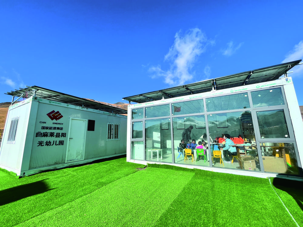 “迷你”幼兒園由兩個(gè)集裝箱組成,箱頂裝有太陽能光伏系統(tǒng),可以滿足供暖、照明等需求。兩個(gè)集裝箱分別是孩子們的教室和功能室。溫暖的陽光透過一扇大大的落地窗照進(jìn)教室,孩子們和老師在里面一起看書學(xué)習(xí)做游戲,雖然室外寒風(fēng)凜冽,但教室內(nèi)卻非常溫暖。