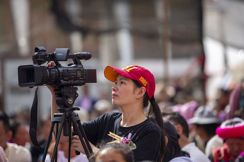 圖為記者洛松拉姆在基層采訪。