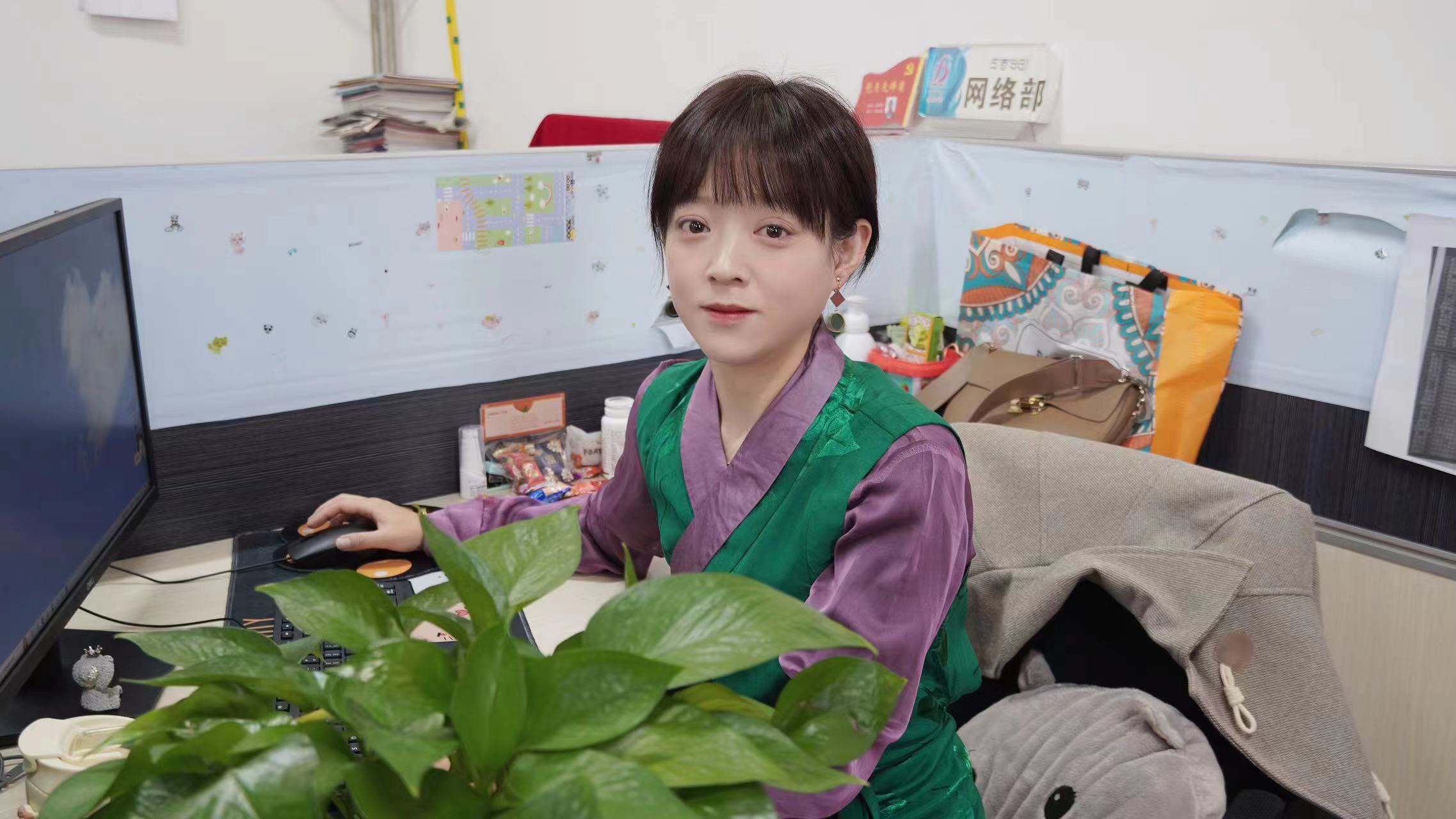 迪慶日?qǐng)?bào)社編輯王瑄怡在單位采編平臺(tái)編校新聞稿件。