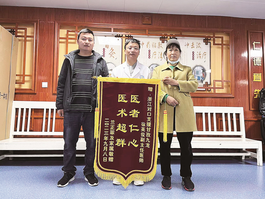 “除病痛醫(yī)術(shù)高超,保健康醫(yī)德高尚”“醫(yī)德高尚、醫(yī)術(shù)精湛”“善良的品德、精湛的醫(yī)技”……2023年2月,浙江省余杭區(qū)第二人民醫(yī)院麻醉醫(yī)生徐英俊赴九龍縣人民醫(yī)院,在海拔3000米的高原上開展醫(yī)療幫扶工作。短短幾個(gè)月,徐英俊的辦公室里不僅掛滿了患者送來的錦旗,他也成了甘孜群眾口中的“浙江專家”。