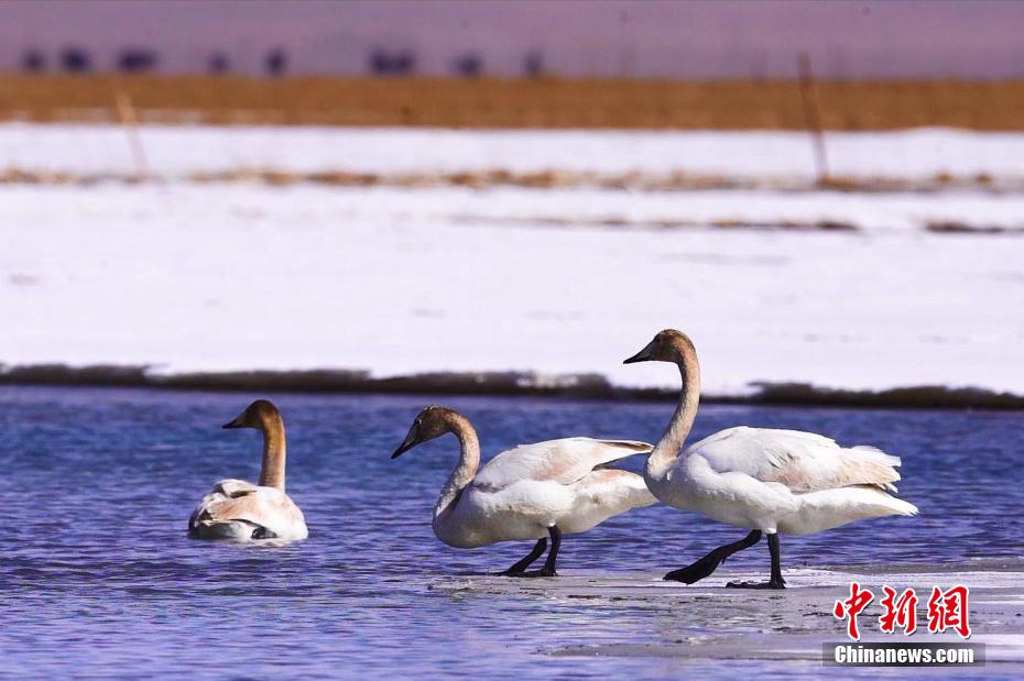 越冬大天鵝青海湖“修整”