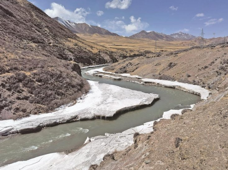 祁連山腹地黑河蜿蜒 流凌晶瑩剔透