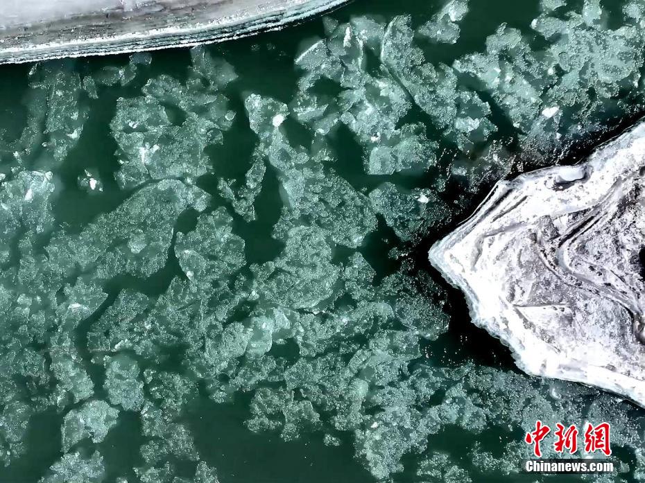 圖為黑河水逐漸上凍。包雷 攝
