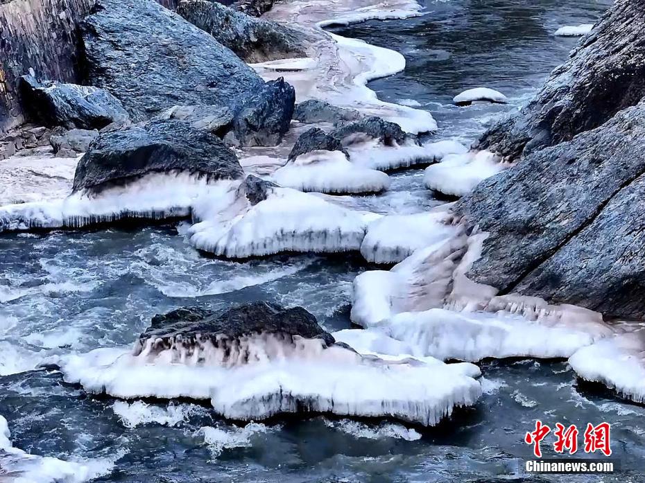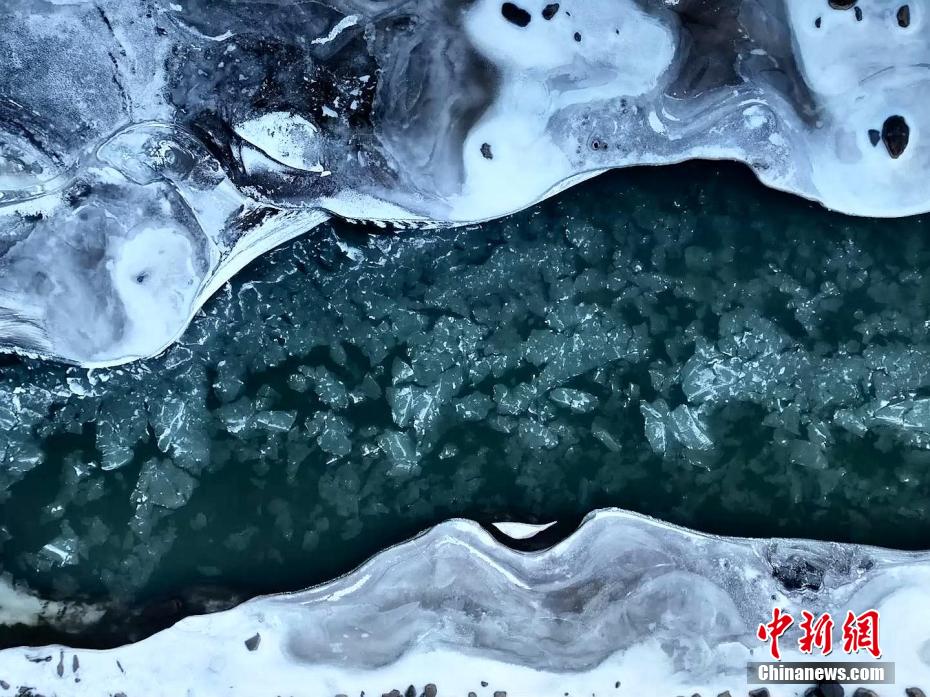 小雪節(jié)氣過后,受冬季冷空氣影響,青海省海北藏族自治州祁連縣境內(nèi)的黑河上游開始出現(xiàn)流凌。攝影師通過無人機(jī)鏡頭從空中俯瞰,河道中成片的冰凌順河而下,在祁連山中蜿蜒曲折。
