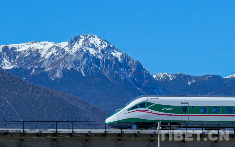 圖為“復(fù)興號”動車組列車,鐵路沿線植被茂密,也可見美麗的雪山,宛如一幅畫卷。迪慶日報社供圖