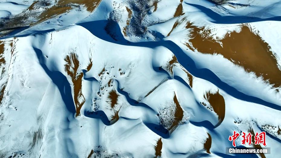 12月中旬,高原青海迎來新一輪寒潮。在青海湖北岸的青海省海北藏族自治州海晏縣,攝影師在金沙灣拍攝到雪落金沙的冬日景色。航拍鏡頭下沙與雪的色彩明暗交錯、波瀾起伏,宛如大自然為大地“咖啡”“拉花”,藍(lán)白交織的純凈讓人心曠神怡。雪后初晴,云河在沙丘間流動,時而隨著氣流“流入”青海湖,沙丘背后的蔚藍(lán)湖水,也讓景色變得奇幻優(yōu)美。青海湖是中國最大的內(nèi)陸高原咸水湖,是維系青藏高原東北部生態(tài)安全的重要水體,也是控制西部荒漠化向東蔓延的天然屏障。