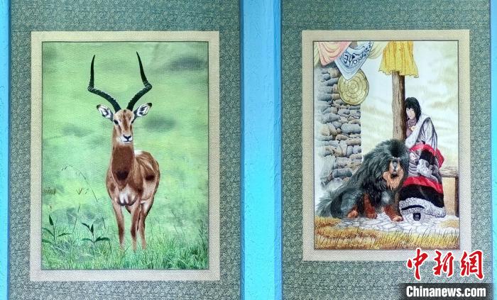 圖為藏繡研發(fā)中心展廳內(nèi)陳列的藏繡作品。祁增蓓 攝