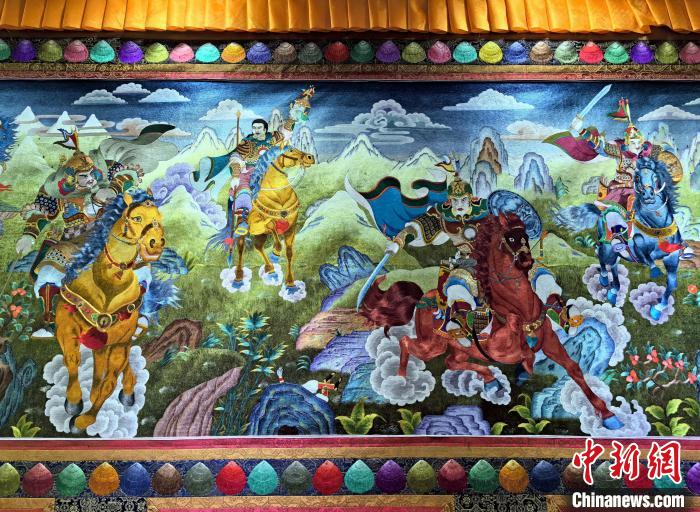 圖為藏繡作品《格薩爾嶺國三十員大將》部分展示。祁增蓓 攝