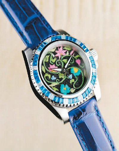 說話間,楊華珍抬起手腕讓筆者看她戴的手表。表盤上繡著羊角花等精美圖案,令人眼前一亮。楊華珍介紹,這是今年為香港賽馬會開發(fā)的“馬場有禮”文創(chuàng)產(chǎn)品,很受市場歡迎。