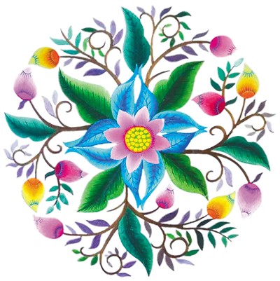 2014年5月,一家國際知名化妝品公司請楊華珍為兩款卸妝油新品設(shè)計瓶身圖案。這兩款產(chǎn)品主要成分都是從植物中提取的,一款取自綠茶,另一款含有8種植物成分。楊華珍將綠葉、花萼、花托巧妙組合,創(chuàng)作出《綠茶花》和《金剛杵》兩幅圖案。綠茶花象征生生不息,金剛杵代表堅固、永恒,都體現(xiàn)了蓬勃的生命力。該公司很欣賞楊華珍的作品,決定高價購買版權(quán)。自此,楊華珍開啟了非遺版權(quán)授權(quán)的跨界合作之路。
