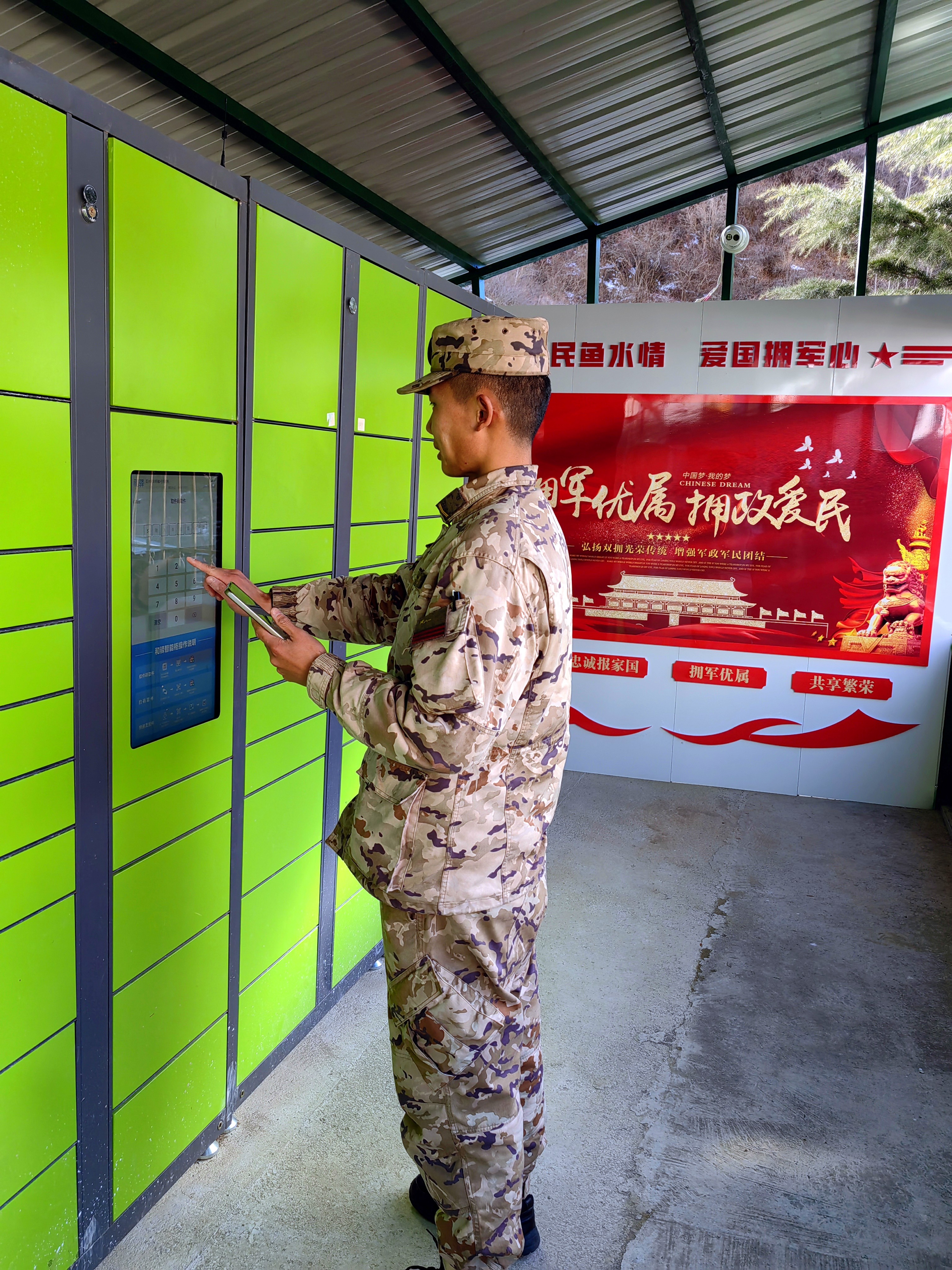 由于武警德欽中隊(duì)駐地距離德欽縣城快遞站較遠(yuǎn),收發(fā)快遞成為部隊(duì)官兵的一大難題,德欽縣愛心企業(yè)喀輿貢囧速遞有限責(zé)任公司了解到情況后,主動聯(lián)系德欽縣雙擁辦,積極伸出援助之手,為擁軍暖心驛站免費(fèi)贈送一組智能快遞柜,及時將快遞配送至擁軍暖心驛站。如今,部隊(duì)官兵只需通過手機(jī)掃描快遞柜的二維碼便可自主領(lǐng)取快遞,這一援助之舉實(shí)實(shí)在在為駐地官兵解決了收發(fā)快遞難題。